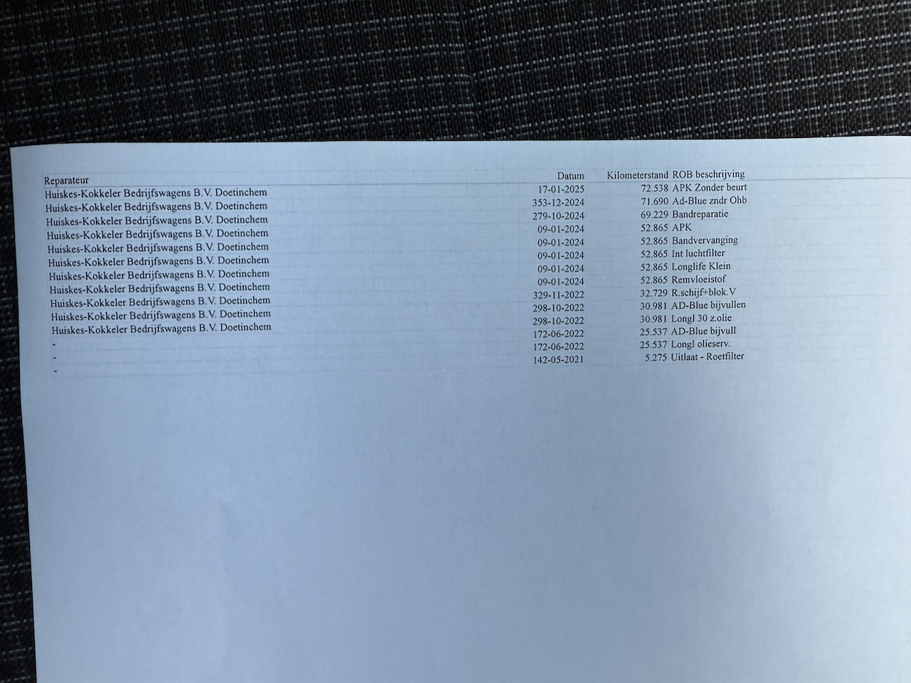APK | Bij aflevering |