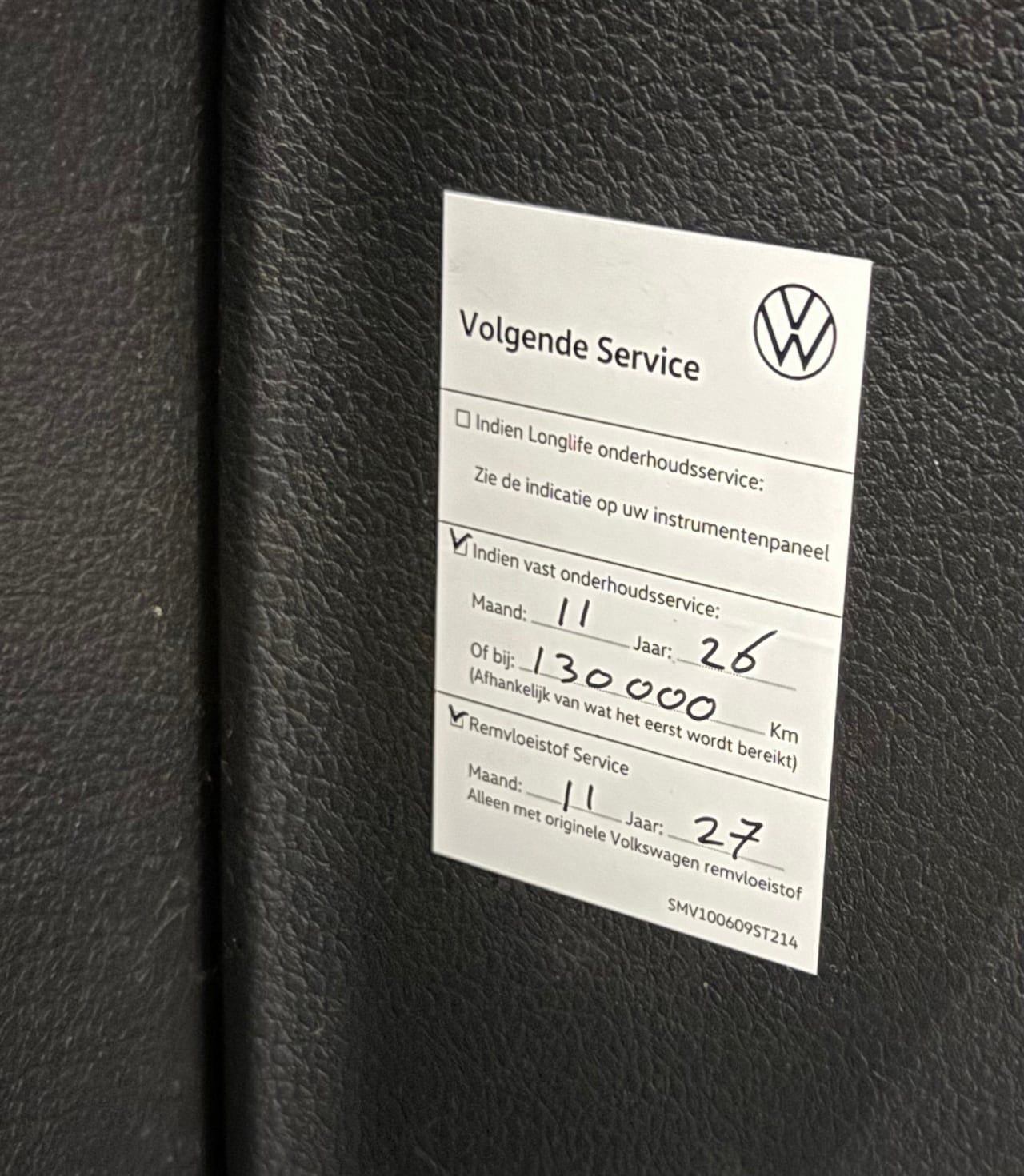 | APK | Bij aflevering |