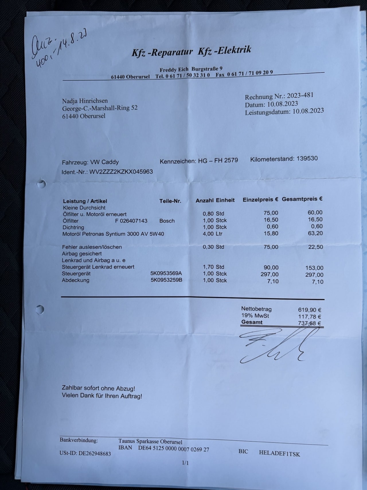 | Kilometerstand | 164.743 km |