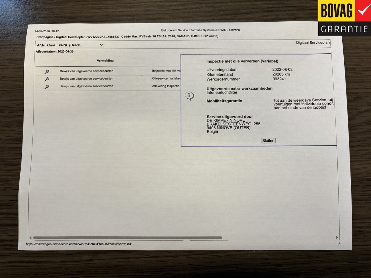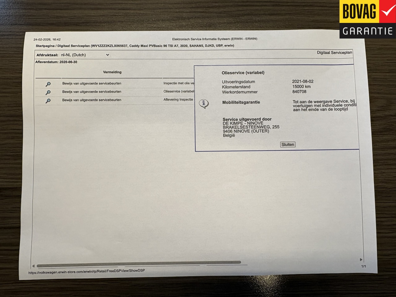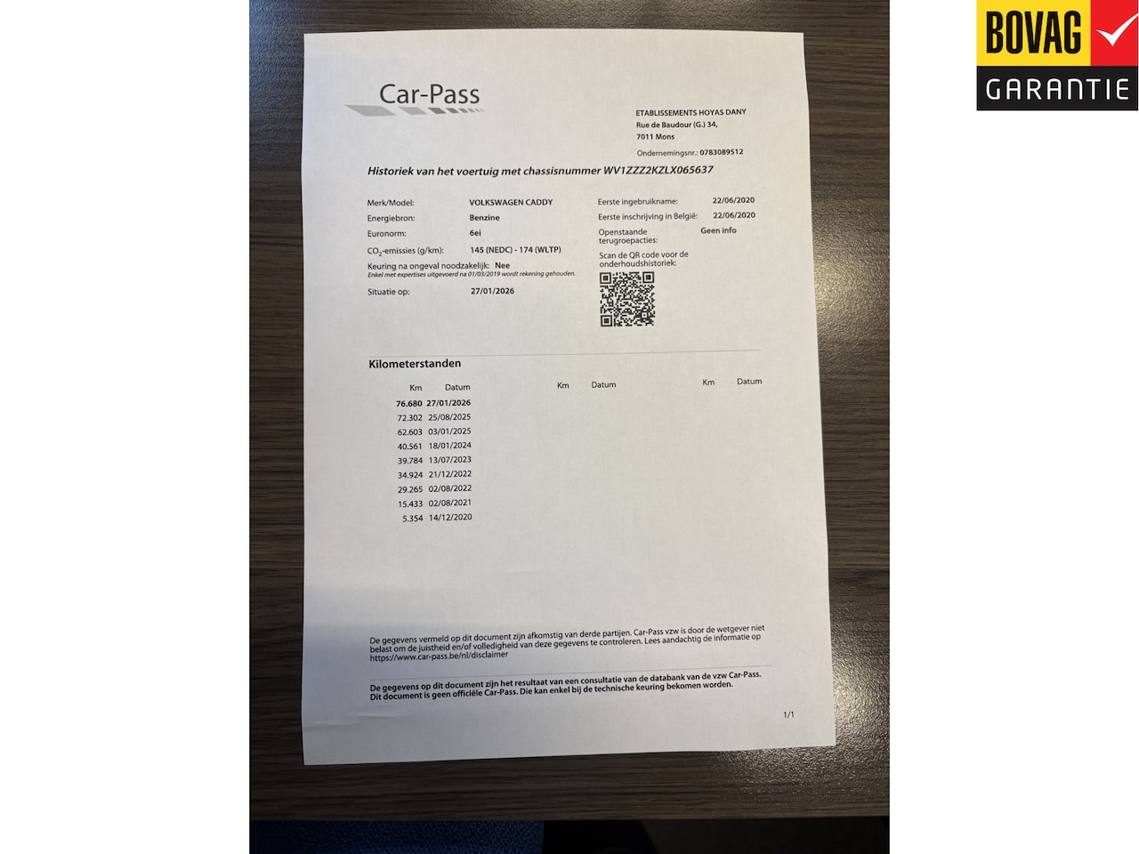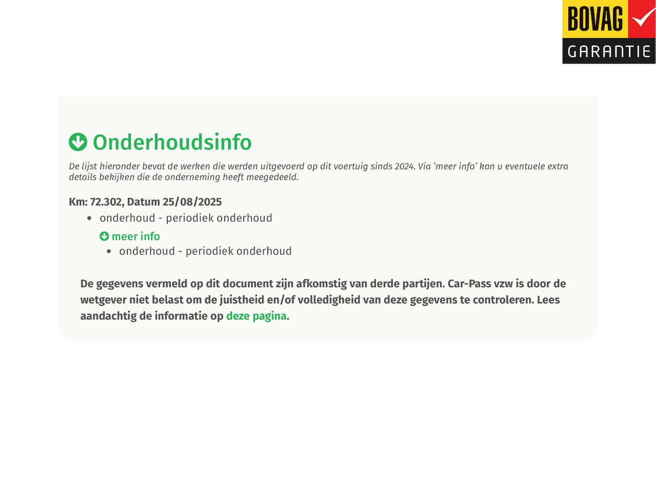 | APK | Bij aflevering |