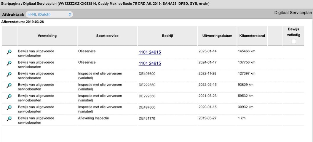 - Onderhoudshistorie aanwezig: Ja