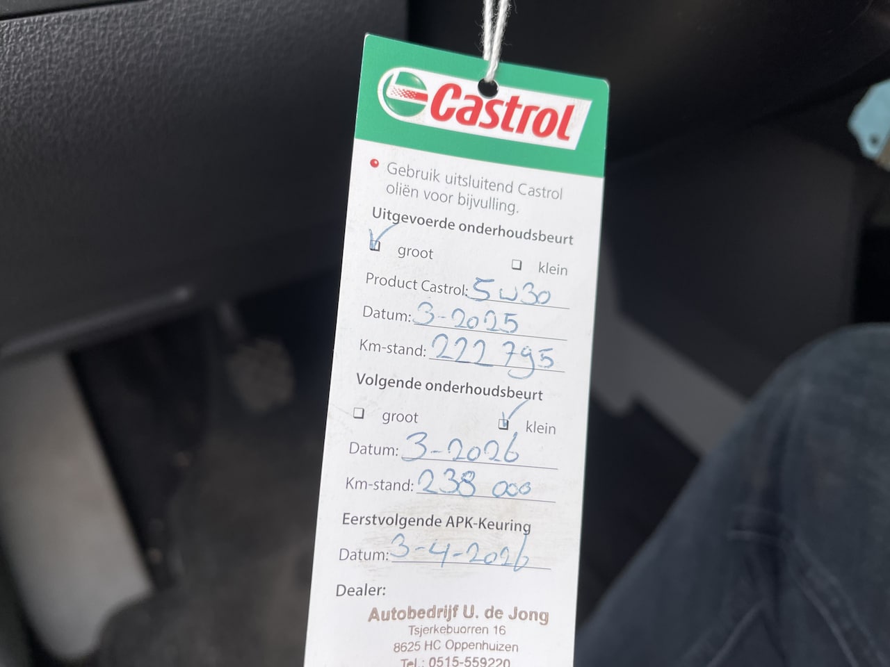 | APK | Bij aflevering |