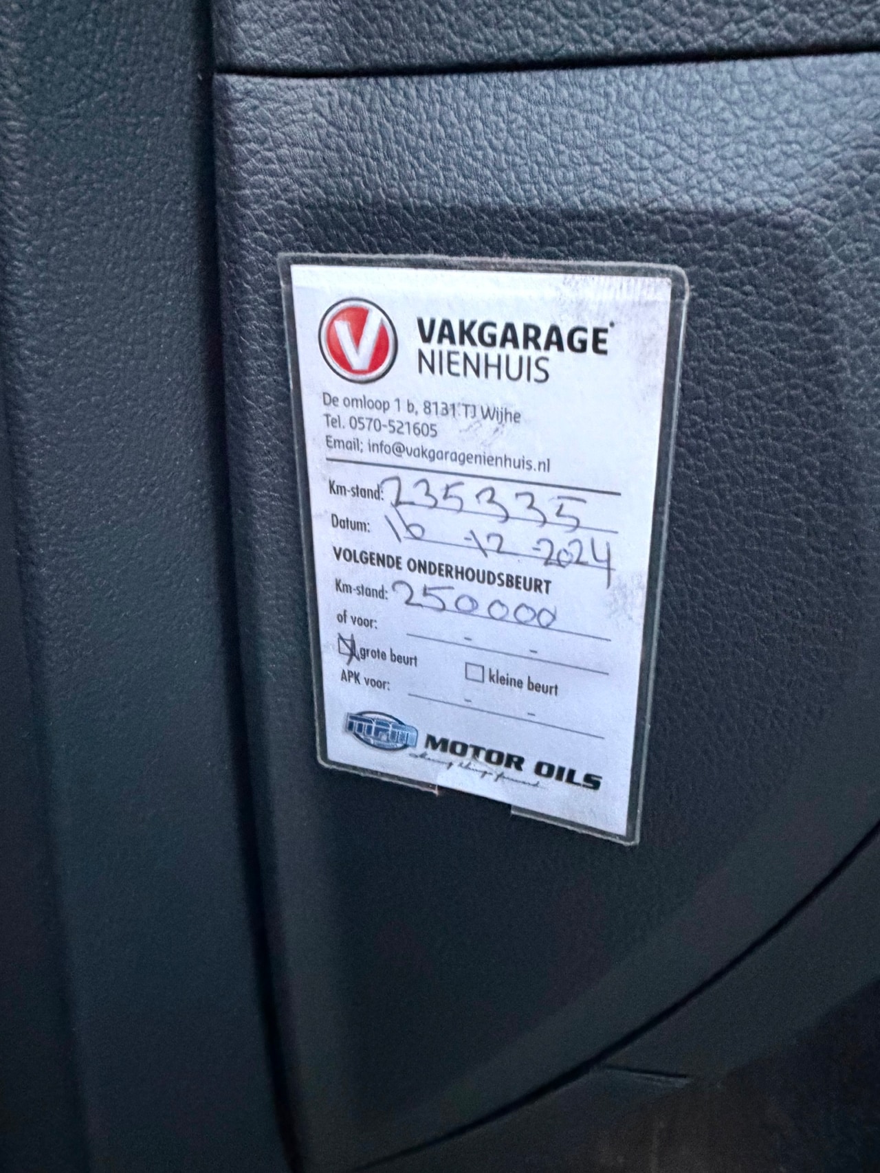 | APK | Bij aflevering |