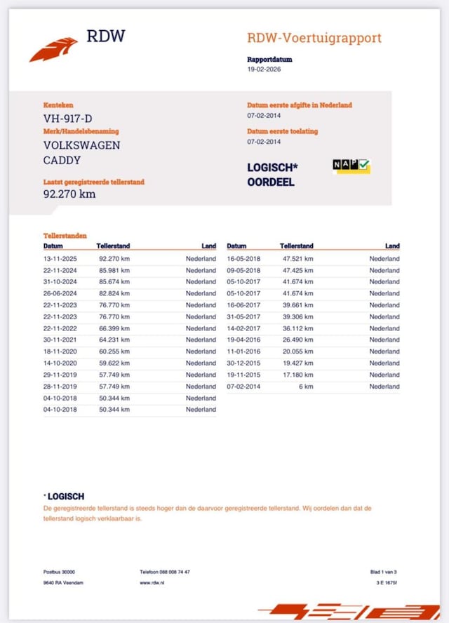 Bij de 82824 km zijn de Verstuivers vervangen een bekend probleem van de 1.6TDI van Volkswagen.
