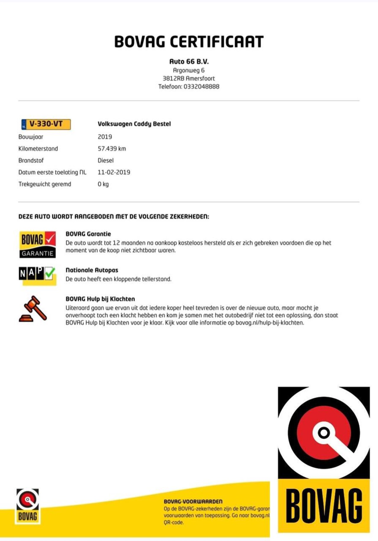 Nationale Auto Pas: de kilometerstand is gecontroleerd en logisch bevonden. 57.439 km