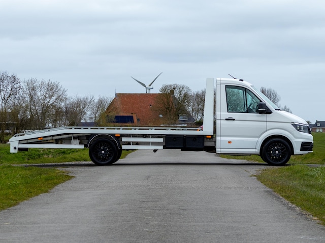 Een sterke en complete Volkswagen Crafter met veel mogelijkheden, ideaal als autotransporter en klaar voor zwaar werk.