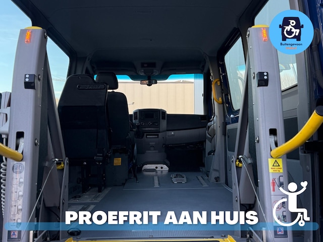 Zeer nette en degelijke Volkswagen Crafter rolstoelbus met de rolstoelzitplaats NAAST de bestuurder.