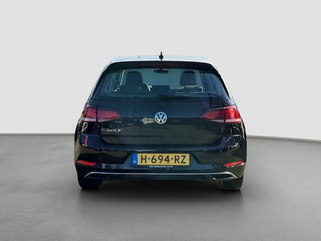 Al decennia toonaangevend, beproefd en betrouwbaar. Da's Volkswagen. Wat een rijervaring, die elektromotor. Forse actieradius, nul uitstoot en heerlijk pittig rijgedrag! Een belangrijke eigenschap van iedere Volkswagen is zijn duurzaamheid. Dat ziet u ook aan deze e-Golf. Zitten in weldadige comfortstoelen : uw rug zal u dankbaar zijn. Bij de uitrusting van deze Volkswagen horen onder meer 16 inch lichtmetalen velgen, LED koplampen, dakspoiler, in delen neerklapbare achterbank, verstelbare lendensteunen en snelheidsafhankelijke stuurbekrachtiging. Als u de adaptive cruise control inschakelt, regelt de auto zelf de snelheid en de afstand tot de auto voor u. Het full map navigatiesysteem zorgt ervoor dat u snel en ontspannen op uw bestemming aankomt. Radarsensoren aan de achterkant van de auto zorgen voor een achteropkomend verkeer waarschuwing als de afstand tot het verkeer achter te klein wordt. Nooit meer te warm of te koud. De automatische airconditioning zorgt altijd voor de temperatuur die u kiest. Terwijl u stuurt, kunt u het audiosysteem bedienen met de knoppen onder uw vingertoppen. Deze Volkswagen is voorzien van parkeersensoren achter, regensensor, automatisch dimmende binnenspiegel, lederen stuur, centrale deurvergrendeling met afstandsbediening en boordcomputer. In de Volkswagen e-Golf heeft uw veiligheid en die van uw omgeving prioriteit. De forward collision warning reduceert het gevaar van een botsing met een voorligger significant. Bij concentratieverlies en toenemende vermoeidheid van de bestuurder, geeft de auto een sterk signaal om u weer bij de les te houden. Hierdoor kunnen veel ongelukken voorkomen worden. De veiligheid van deze auto wordt verder verhoogd door hill hold functie, frontale botsbescherming en bandenspanningcontrolesysteem. Maak nu een afspraak als u met deze elektrische auto een proefrit wilt maken.