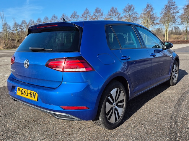 Keurige Volkswagen E-Golf van de tweede generatie, dus met de grotere 35,8 kWh-accu, 136 pk en een WLTP-bereik van 232 kilometer. In de zomer red je er zomaar 200 kilometer mee, in de winter wat minder. Auto is in januari 2022 door onszelf bij een dealer in Duitsland aangeschaft en geïmporteerd. Stond aanvankelijk op naam van mijn vader, sinds diens overlijden op naam van mijn moeder. Vandaar de twee Nederlandse eigenaren tot nu toe.
