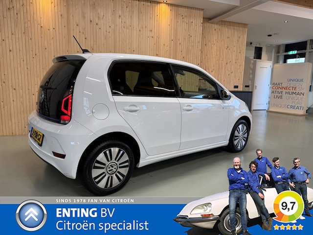 Door inruil verkregen: Zowel van binnen als van buiten in nette staat verkerende E-Up! Deze auto is als 2e auto gebruikt voor de korte ritten in de buurt waar deze E-Up! uitermate geschikt voor is. Een zeer fijn en zeer soepele auto waarmee je handig door het stadsverkeer heen rijdt. Het betreft een luxe uitvoering met vele extra's w.o. climat control, cruise control, parkeerdetectie achter incl. achteruitrijcamera, stoelverwarming en voorruitverwarming. Het design pakket met fraaie 15 INCH LM velgen, de donker getinte ramen achter en het luxe interieur met sfeerverlichting in het dashboard geven de auto een luxe uitstraling. Laat u overtuigen met een proefrit. Boekjes alsmede 2 afstand bediende sleutels aanwezig, Staat rondom op zeer goede Vredestein all season banden. 2 laadkabels aanwezig. Onze afleveringskosten bedragen 595,- euro. Hiervoor krijgt de auto een beurt incl aircoservice en 6 maand garantie. INRUIL EN FINANCIERING MOGELIJK. We leveren hem met een SOH rapport wat u inzicht geeft over de staat van het accupakket.