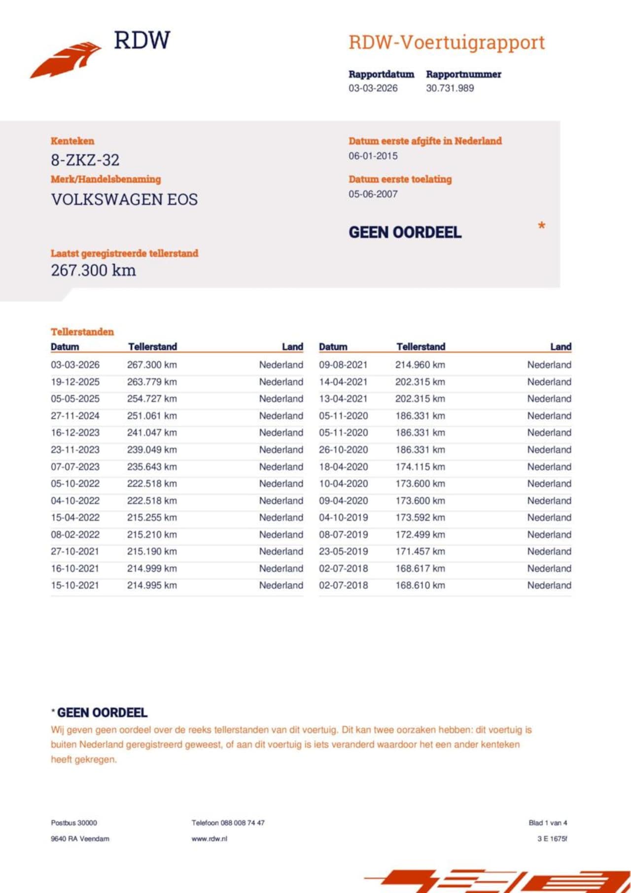 | Kilometerstand | 267.300 km |