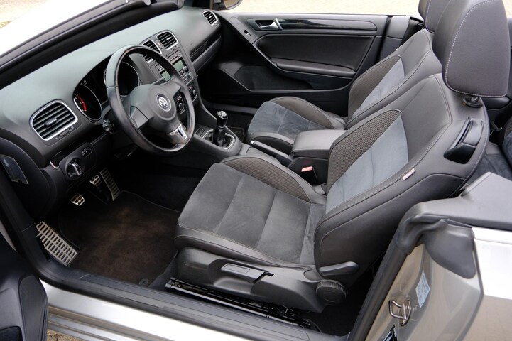 Het interieur is netjes uitgevoerd met een combinatie van leder en alcantara, wat zorgt voor een comfortabele en luxe uitstraling. De Golf Cabriolet staat bekend om zijn solide bouwkwaliteit, fijne rijeigenschappen en betrouwbare techniek, waardoor hij een populaire keuze blijft in zijn segment.