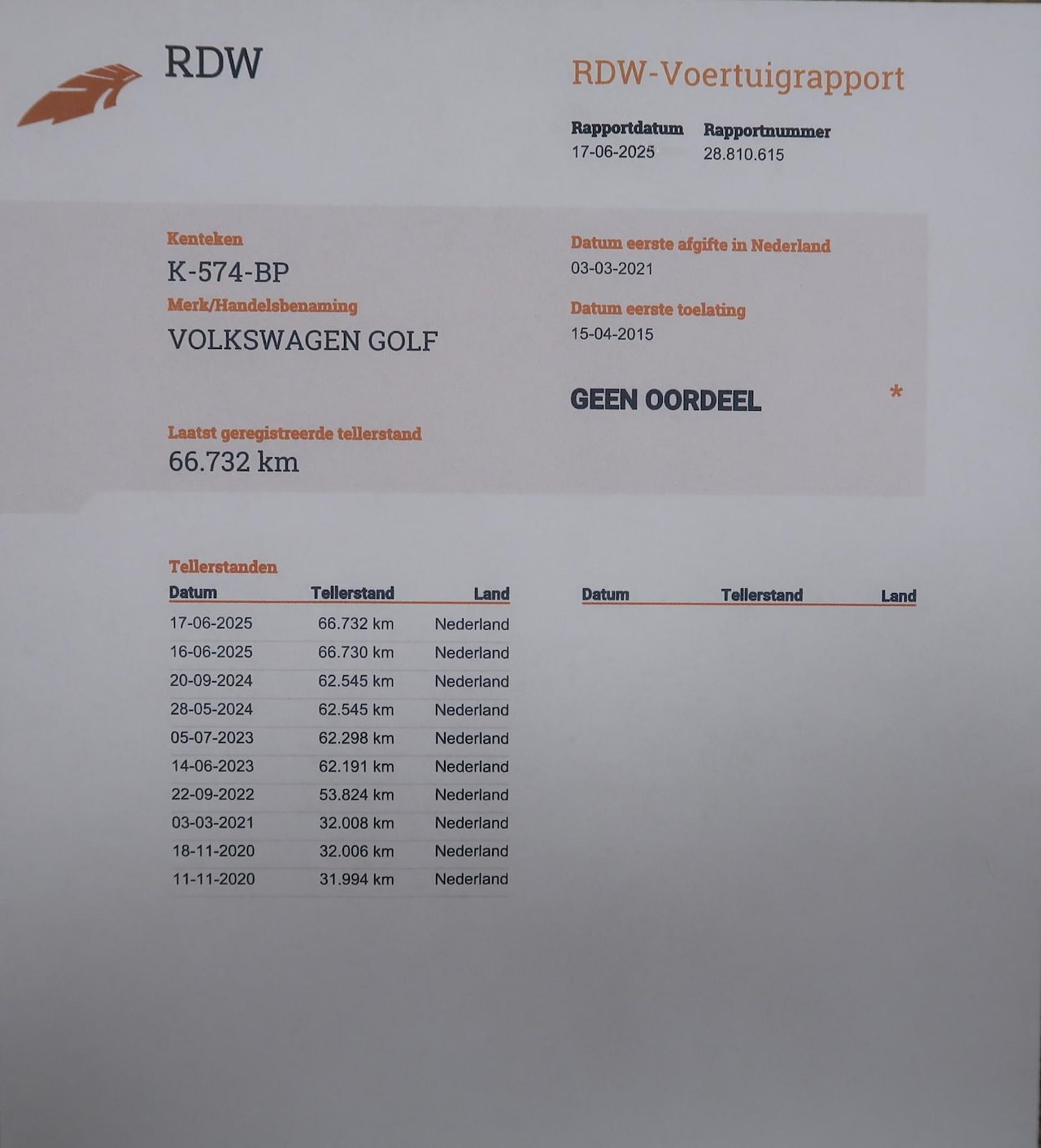 | Kilometerstand | 66.732 km |