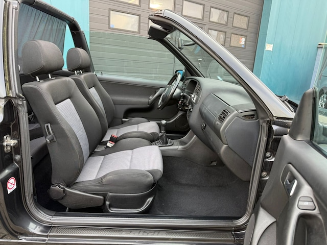In zeer nette staat verkerende en perfect rijdende VW Golf 1.8 Cabriolet Trendline met airconditioning, cruise control, stuurbekrachtiging, mooie 16 inch lm velgen, metallic lak, elec ramen voor en achter, elec buitenspiegels, centrale vergrendeling op afstand, getint ww glas, radio/cd speler, boardcomputer, in hoogte verstelbare stoelen en stuur, windscherm, hoofdsteunen voor en achter, zeer mooie Sonnenland kap, bumpers en spiegels in carrosseriekleur etc. Geen import maar gewoon origineel NL Auto met onderhoudsboekjes en NAP (nationale autopas) certificaat en 2 sleutels aanwezig. Inruil en financiering mogelijk. Koopje voor deze prachtige en zeer complete Volkswagen Golf 1.8 Cabriolet met deze originele lage km stand slechts 2900,- (All-in prijs wij berekenen geen afleveringskosten).