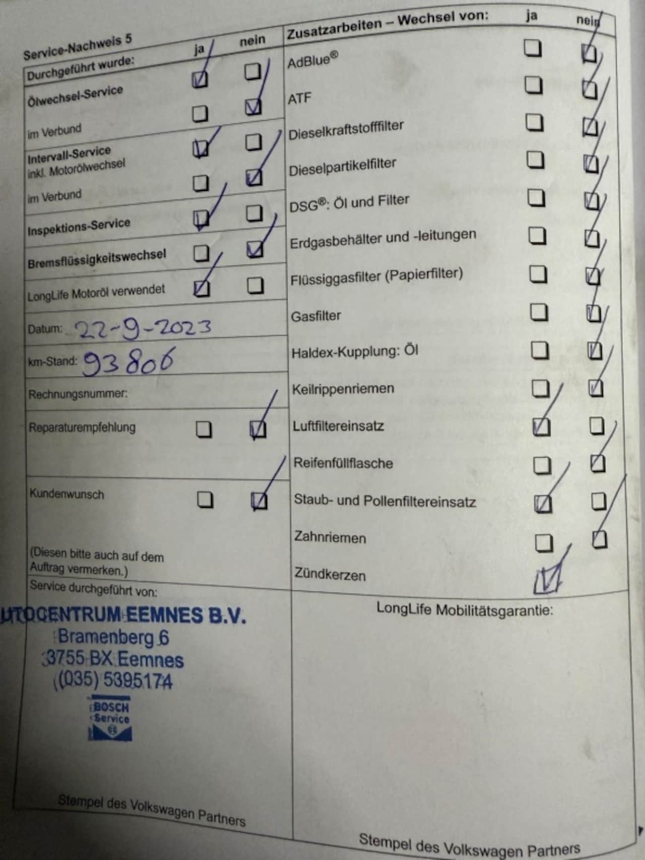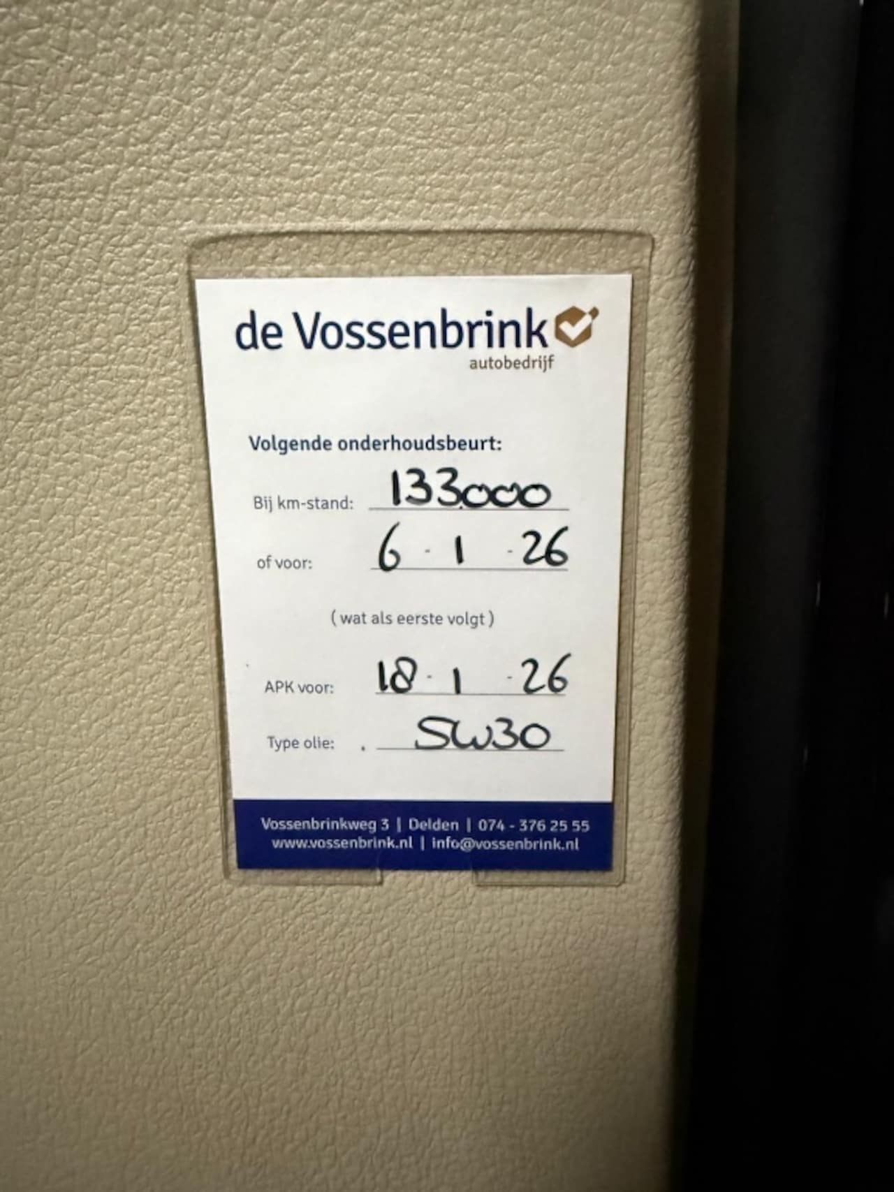 | APK | Bij aflevering |