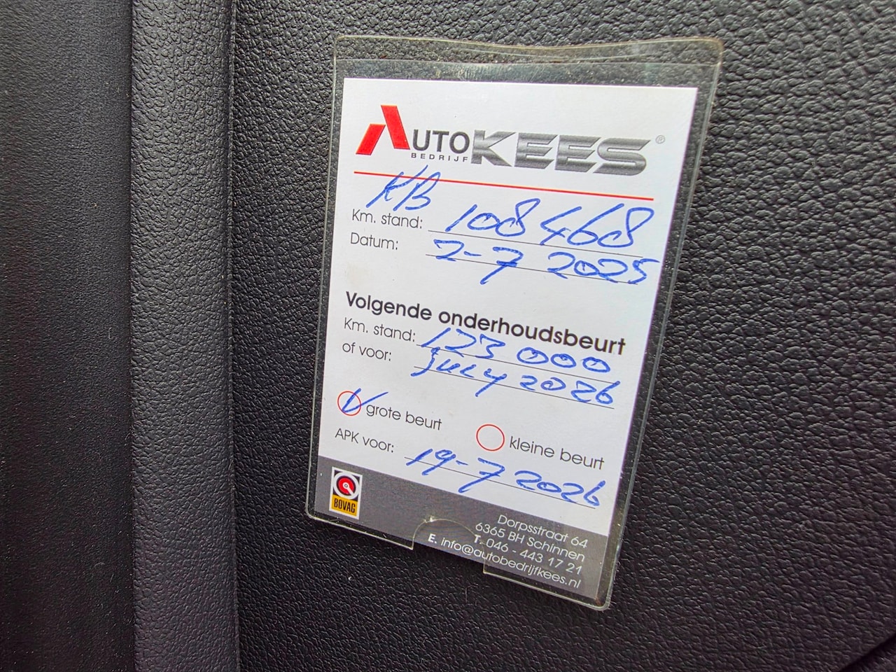 | APK | Bij aflevering |