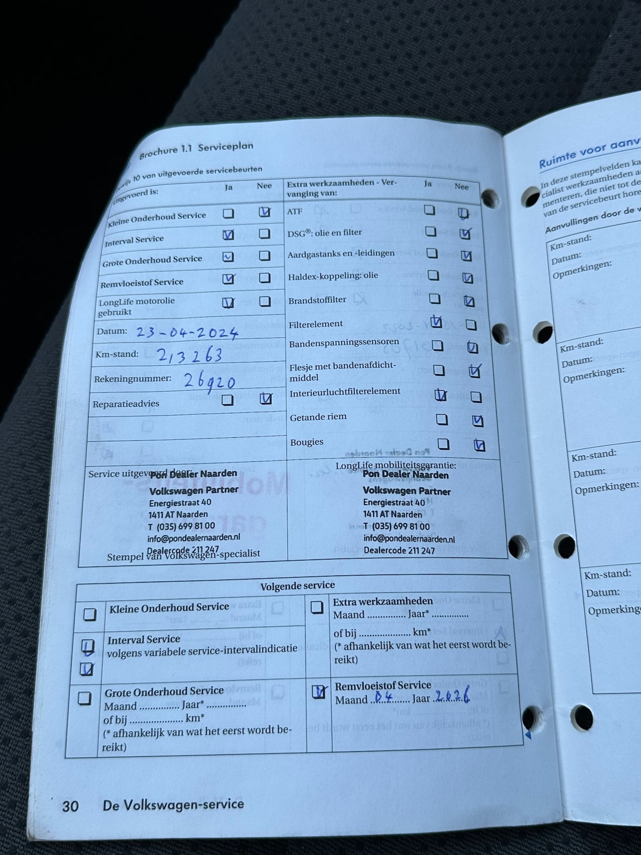 | APK | Bij aflevering |