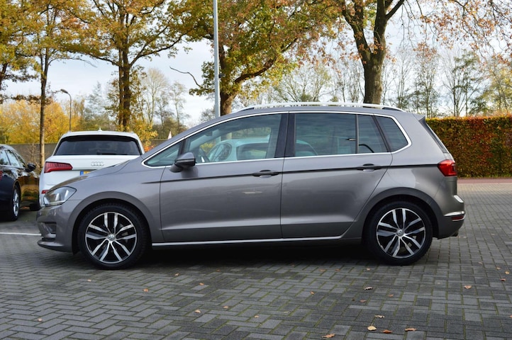 Volkswagen Golf Sportsvan 1.6 TDI Highline, voorzien van o.a.: DSG, automatische airco, centrale vergrendeling op afstand, 17" lichtmetalen velgen, alcantara interieur, multifunctioneel lederen stuurwiel, full-map navigatiesysteem, elektrische ramen voor en achter, privacy glas, cruise control, parkeersensoren voor en achter, elektrisch wegklapbare trekhaak, dakrails, onderhoudsboekjes ingevuld aanwezig.