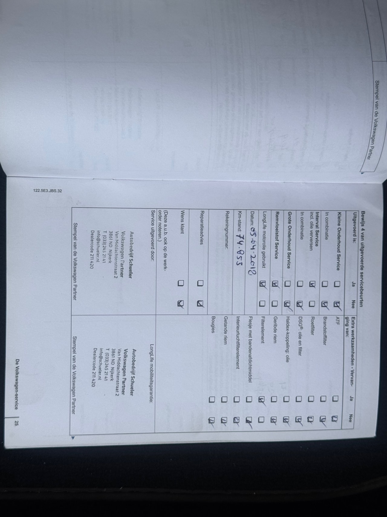 | APK | Bij aflevering |