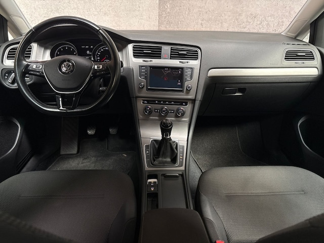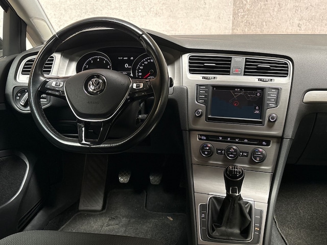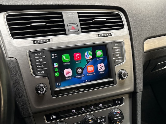 In deze Golf vindt u niet alleen schakelaars op het stuur om het audio-installatiesysteem te bedienen en het navigatiesysteem met harde schijf, maar er is ook spraakbediening. Deze Volkswagen Golf is voorzien van sensoren aan de achterzijde om een achteropkomend verkeer waarschuwing te geven als de afstand tussen u en een achterligger te klein is. Dankzij automatische airconditioning is het interieur behaaglijk warm of verfrissend koel. Liever gepiep dan gekraak? Dan zult u blij zijn met de aanwezige parkeersensoren! Met de cruise control komt u bijna nog fitter aan dan u vertrekt. De Volkswagen is standaard voorzien van: lederen sportstuur, usb-aansluiting, centrale deurvergrendeling met afstandsbediening, bagage afdekhoes, boordcomputer en lederen versnellingspook.
