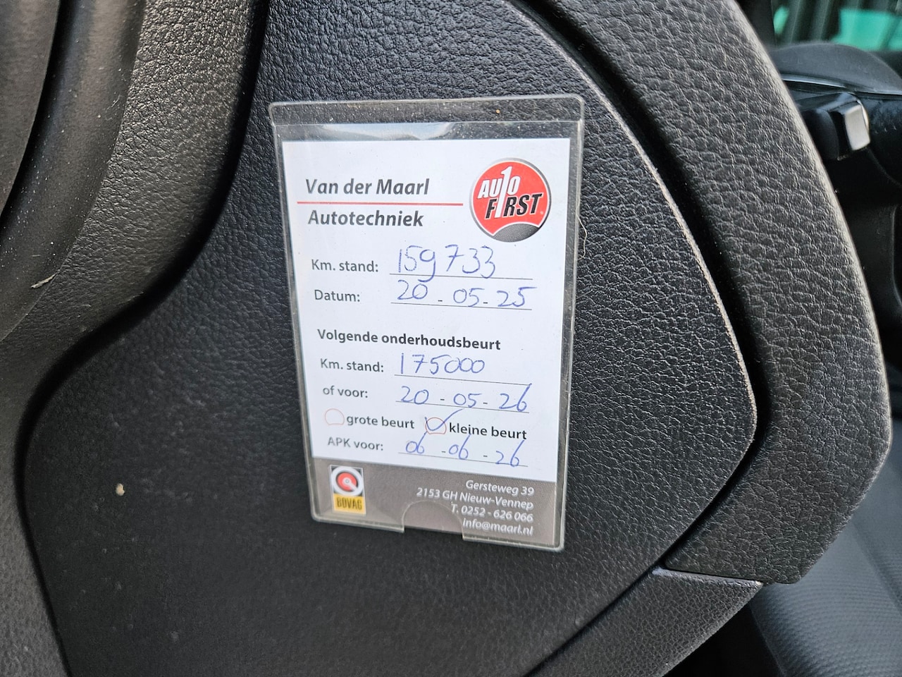 | APK | Bij aflevering |