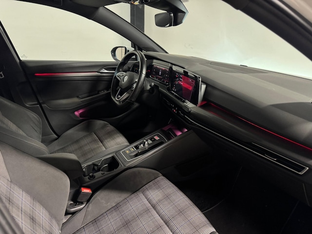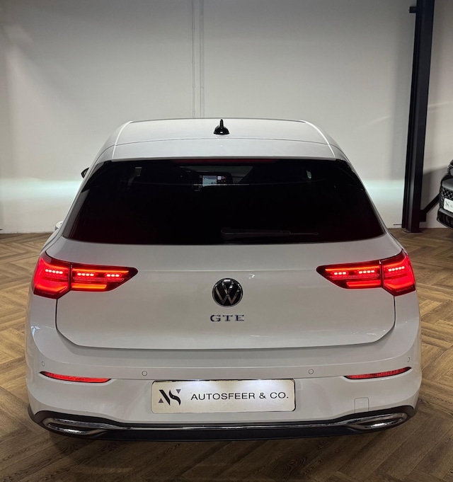 Het uiterlijk van de Golf GTE onderscheidt zich door sportieve en moderne details, zoals blauwe accenten in de grille, specifieke GTE-badges en een strak LED-lichtdesign. In het interieur beschikt de auto over een digitaal dashboard, een groot infotainmentscherm en sportstoelen met een herkenbaar ruitpatroon. De afwerking en technologie zorgen voor een moderne en luxe uitstraling.
