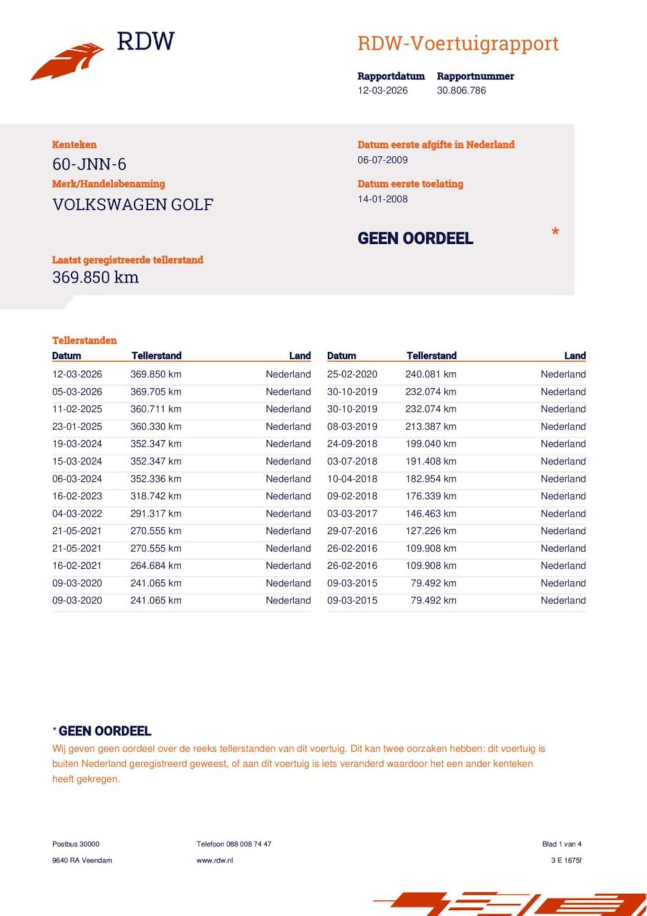 | Kilometerstand | 369.850 km |