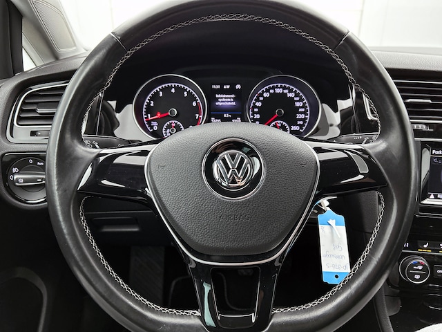 Nooit meer de weg kwijt: daarvoor zorgt het onboard navigatiesysteem. Automatische airconditioning verwarmt of koelt het interieur met een druk op de knop. U kunt bij het inparkeren natuurlijk niet aan alle kanten ogen hebben. Daarom is deze Volkswagen Golf voorzien van parkeersensoren! Achter het stuur van deze Volkswagen bent u niet alleen. De auto kijkt als het ware met u mee tijdens de rit. De regensensor schakelt de ruitenwissers in als het nodig is en de automatisch inschakelbare verlichting doet de lichten voor u aan. Digitale muziek afspelen gaat heel eenvoudig met de ingebouwde usb-aansluiting. Ook automatisch dimmende binnenspiegel, lederen stuur, isofix-aansluiting, centrale deurvergrendeling met afstandsbediening, boordcomputer en lederen versnellingspook horen tot de voorzieningen op deze auto.