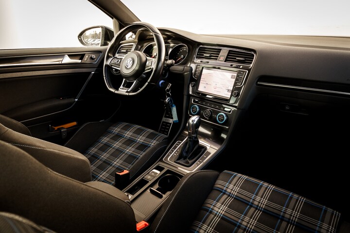 De Golf GTE combineert het vertrouwde karakter van de Volkswagen Golf met moderne plug in hybride techniek. Met een volle batterij rijdt deze GTE tot circa 40 kilometer volledig elektrisch, waardoor korte en middellange ritten vaak zonder directe uitstoot kunnen worden afgelegd. In elektrische modus is de auto stil, comfortabel en soepel, zowel in de stad als op de snelweg. Wanneer de accu leeg raakt, schakelt het systeem automatisch over naar hybride modus. De 1.4 TSI benzinemotor en elektromotor werken dan samen, waarbij de elektromotor ondersteuning biedt tijdens accelereren en het terugwinnen van energie bij afremmen en uitrollen. Dit zorgt in de praktijk voor een efficiënt en ontspannen rijgedrag, met lagere kosten per kilometer dan bij een traditionele benzineauto. Kenmerkend detail is de ruitjes bekleding, een subtiele verwijzing naar de iconische Golf 1.