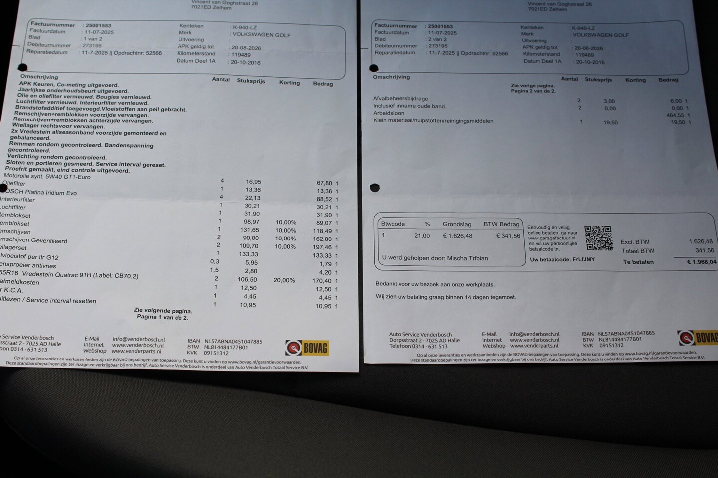 Bij aflevering