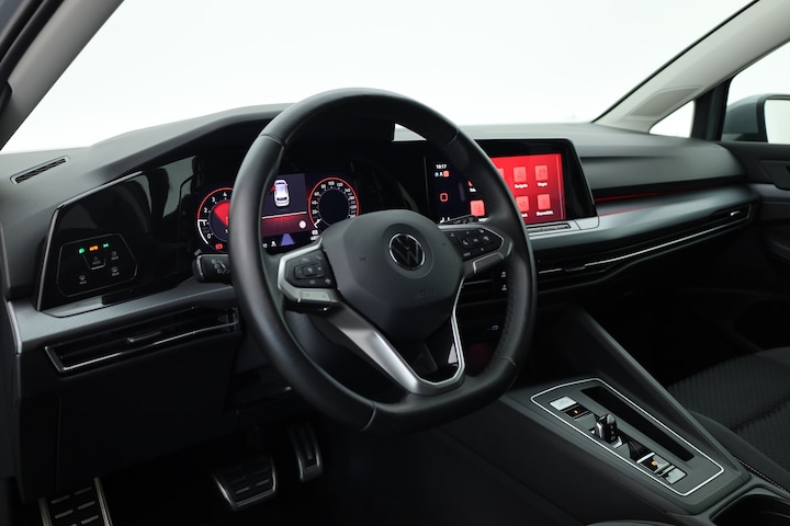 Volkswagen Golf 1.5 eTSI DSG voorzien van o.a. navigatiesysteem, LED koplampen, Apple CarPlay en Android Auto, parkeersensoren voor en achter, adaptieve cruise control, stoel en stuurverwarming etc.