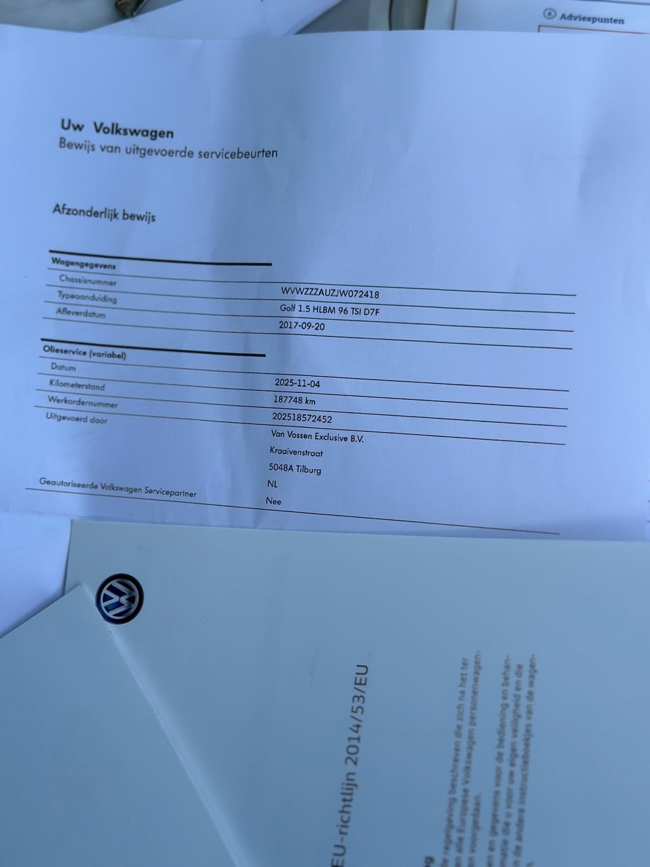 | APK | Bij aflevering |