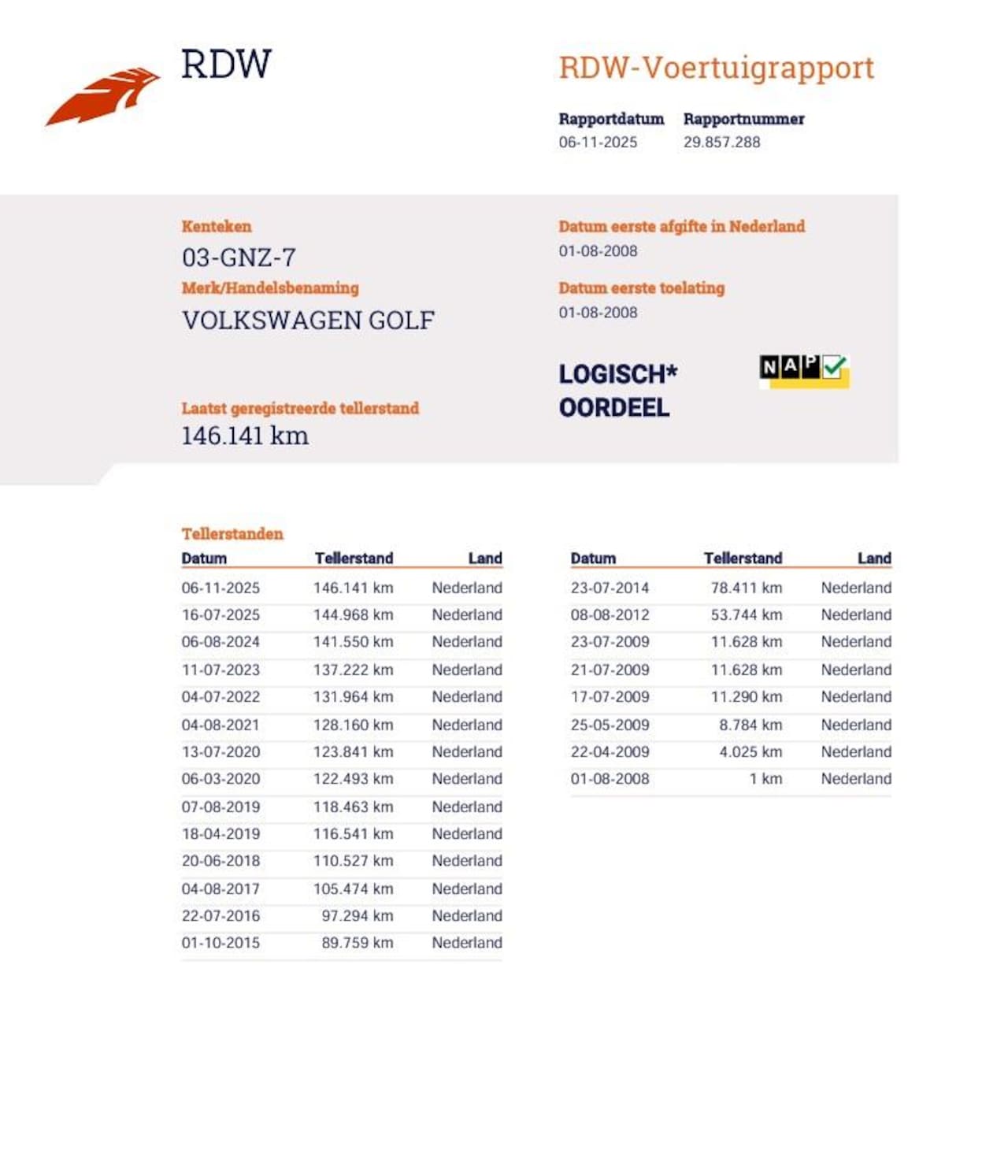 | Kilometerstand | 146.141 km |