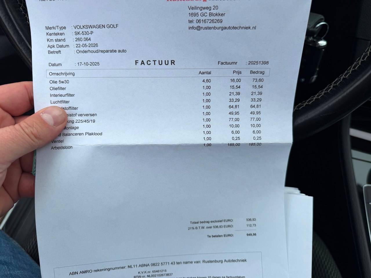 | APK | Bij aflevering |