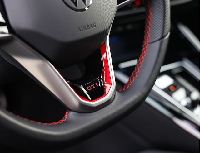 Het exterieur is uitgevoerd in Reflex Silver metallic, wat de auto prachtig staat in combinatie met het Black Style pakket en de 19” Scottsdale velgen in hoogglans zwart. Als GTI zijn de iconische rode accenten ook aanwezig, met een rood GTI-logo in de grille en zijschermen, rode remklauwen en een rode velgrand. Om het plaatje compleet te maken en de beleving nóg leuker te maken is deze GTI uitgerust met een Akrapovic-uitlaat.