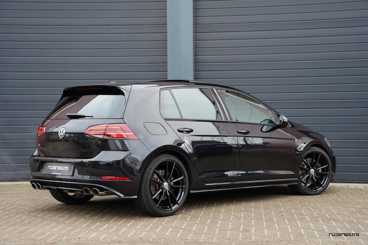 Dit betreft een Golf R van het laatste productiejaar, dus met alle verbeteringen die door de jaren heen (softwarematig) zijn doorgevoerd. De R is uitgevoerd in de kleur Deep Black Pearl en voorzien van 19 inch Pretoria-wielen. Dit vormt een mooi contrast met de – voor de Golf R karakteristieke – matzilveren spiegelkappen.