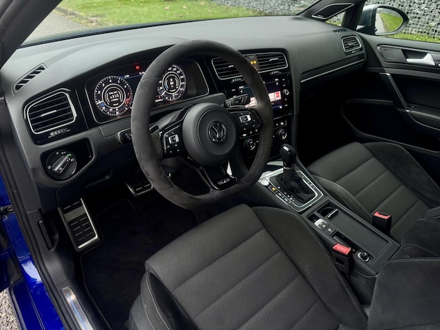 De Volkswagen Golf R zul je in deze uitvoering en in deze staat niet vaak tegenkomen. In het interieur vind je de unieke samenstelling van zwart alcantara/stof interieur samen met de alcantara stuur, alcantara pookhoes en alcantara armsteun. Verder beschik je over 19-inch zilvere Pretoria velgen. Deze zijn zo goed als vrij van beschadigingen en verder staat de auto verder op 4 goede Continental SportContact7 zomerbanden.