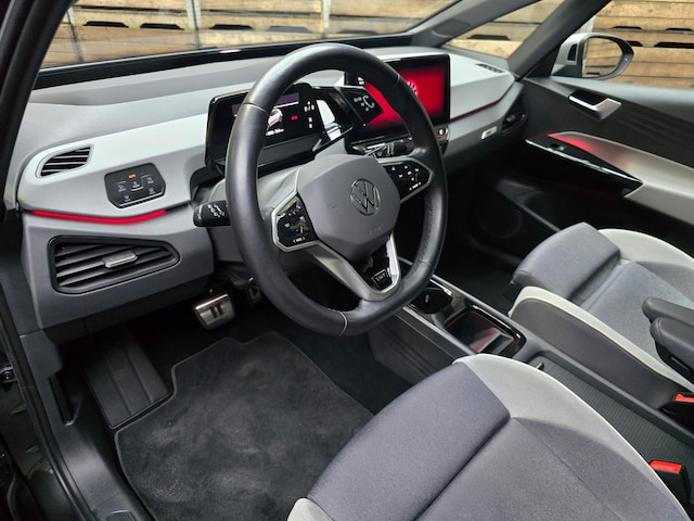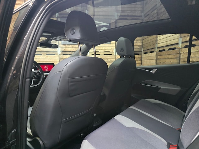 Dynamische styling, zorgvuldig afgewerkt met fraaie materialen en ontworpen met oog voor detail. De Volkswagen ID.3 is van binnen en van buiten een toonbeeld van Duits design. Niet voor niets is de vraag naar gebruikte Volkswagens zo groot, want de kwaliteit staat ook na een aantal jaren nog buiten kijf, zoals aan deze ID.3 duidelijk te zien is. Lekker hoor, die verwarmbare voorstoelen. Helemaal op koude dagen. Bovendien krijgen uw rug en die van uw bijrijder desgewenst extra aandacht door de massagefunctie. Het glazen panoramadak zorgt ervoor dat u zich omringd voelt door de omgeving. Een heerlijk luxe optie van deze auto is het verwarmbare stuurwiel. De koplampen met matrix LED-verlichting geven daglichtkwaliteit zonder tegenliggers te hinderen. Bij de uitrusting van deze Volkswagen horen onder meer 20 inch lichtmetalen velgen, extra getint glas, in delen neerklapbare achterbank, LED-achterlichten, verstelbare lendensteunen en snelheidsafhankelijke stuurbekrachtiging.