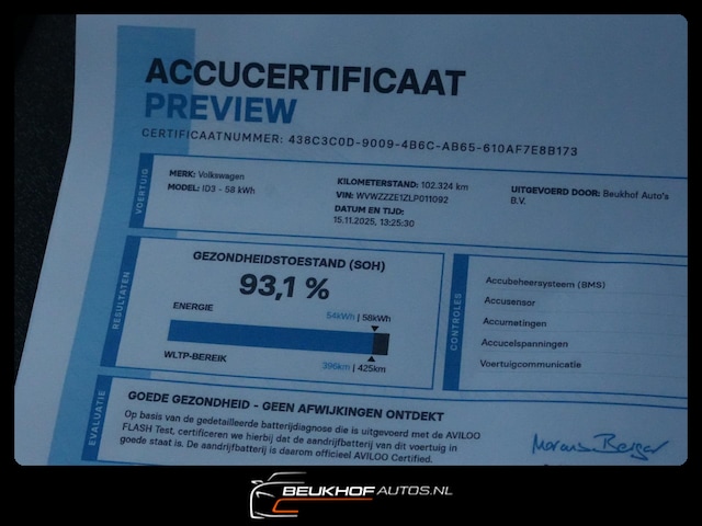 Accu: 58 kWh, Conditie: 93%