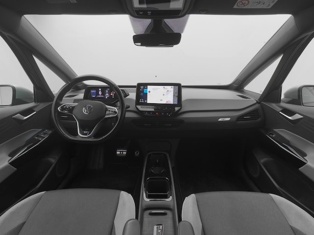 Nooit meer parkeerschade dankzij de achteruitrijcamera. Adaptive cruise control is een comfortabele en veilige optie. Het systeem reguleert de snelheid en houdt automatisch afstand tot uw voorligger. De speciale app verbindt met Connected Services, die de status van vitale functies bijhoudt en waarschuwt als u bijvoorbeeld moet tanken, de bandenspanning moet controleren of olie moet bijvullen. Laat u onderweg niet afleiden, de bediening van het audiosysteem en ook het navigatiesysteem gaat met knoppen op het stuur en met spraak. Natuurlijk is de audio-installatie voorzien van DAB-ontvangst. Omdat u nu eenmaal niet overal ogen heeft, is deze Volkswagen ID.3 voorzien van een achteropkomend verkeer waarschuwing die registreert wanneer de afstand tot uw achterligger te krap is. En deze auto heeft ook automatische airconditioning, regensensor, keyless entry, automatisch dimmende binnenspiegel, lederen stuur en centrale deurvergrendeling met afstandsbediening als standaard uitrusting.