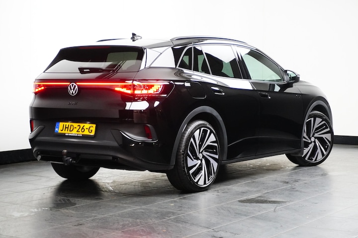 Volkswagen-rijders waarderen hun merk om de degelijkheid van de techniek en de uitmuntende rijkwaliteiten. Een Volkswagen is bovendien comfortabel en ruim, omdat hij altijd is ontworpen met de inzittenden als uitgangspunt. Een ID.4 zoals deze bijvoorbeeld, biedt ruim comfort voor vijf inzittenden. De voordelen van de elektromotor spreken voor zich: stil, schoon en snel! Zoals het een echte Volkswagen betaamt, verkeert deze ID.4 in uitstekende conditie. Een krachtige motor geeft deze auto zijn sportieve prestaties. De verwarmbare voorstoelen benadrukken nog maar eens dat we hier te maken hebben met een regelrechte verwenauto voor bestuurder en bijrijder. Rijden met pit? Geen punt! De sportstoelen geven steun en stevigheid! Een praktische extra is de elektrisch bedienbare achterklep die opent en sluit met een druk op de knop. Koude handen? Da's voorbij met het verwarmd stuurwiel. Pak aan! Opvallend is de geavanceerde matrix LED-verlichting met daglichtkwaliteit. De koplampen dimmen automatisch het deel van de lichtstraal waar voor- of tegenliggers in rijden. De overige segmenten blijven aan en verlichten de weg maximaal. In deze auto profiteert u onder andere ook van: 21 inch lichtmetalen velgen, geluidsisolerende ramen, in delen neerklapbare achterbank, LED-achterlichten, verwarmde ruitensproeiers en snelheidsafhankelijke stuurbekrachtiging. Met adaptive cruise control houdt de auto zelfstandig afstand tot uw voorligger. Een veiligheidsverhogende optie waarmee u comfortabel onderweg bent. Bij deze auto is uw smartphone een geavanceerde afstandsbediening. Remote services brengen u overal in contact met uw auto. Kies de muziek waarvan u houdt, dankzij de DAB-radio klinkt het altijd geweldig. Intussen bedient u het audiosysteem met de knoppen op het stuur of met uw stem. Electronic climate control verwarmt of koelt het interieur met een druk op de knop. Geen parkeervak is te klein dankzij de assistentie van de parkeersensoren. Wat u ook in deze auto kunt vinden zijn regensensor, automatisch dimmende binnenspiegel en centrale deurvergrendeling met afstandsbediening. Pragmatisch en veilig als deze auto is, beschikt hij over diverse veiligheidssystemen. In het instrumentarium laat de verkeersborddetectie de actuele verkeersborden zien. Voorzien van het Lane-keeping systeem. Ofwel: blijf automatisch in je baan. Vermoeidheidsherkenning is een systeem dat met verschillende sensoren tekenen van vermoeidheid bij de chauffeur waarneemt. Deze krijgt tijdig een waarschuwing, wat ongelukken kan voorkomen. De veiligheid van deze auto wordt verder verhoogd door autonoom remsysteem en bandenspanningcontrolesysteem. Maak nu een afspraak om de sensatie van elektrisch rijden te ervaren. Proefrit? Even bellen!