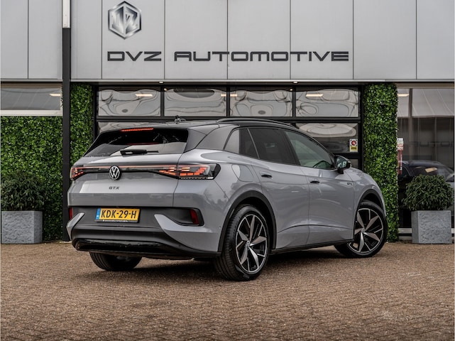 Indrukwekkende en sportieve Volkswagen ID.4 GTX uit 2023, uitgevoerd met krachtige 300 PK en 4Motion vierwielaandrijving. Deze volledig elektrische SUV combineert prestaties met comfort en innovatieve technologie, en is afkomstig van de eerste eigenaar.