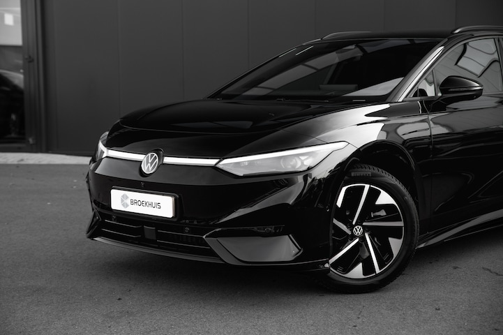 Een Volkswagen pik je er altijd uit, want je herkent hem aan zijn dynamische styling, aan zijn degelijke bouw en aan zijn sportieve lijnen. Dat geldt ook voor deze ID.7 Tourer, die met zijn eigentijdse design helemaal past in het moderne straatbeeld. U wordt actief onderdeel van de energietransitie met de elektromotor. Hoewel de auto uit 2025 komt, heeft hij maar 2900 kilometer gereden. Een krachtige motor geeft deze auto zijn sportieve prestaties. Behaaglijk onderweg zijn? Als bestuurder geniet u van de verwarmbare voorstoelen met massagefunctie. Net als uw bijrijder! U past de stoelen moeiteloos aan, ze zijn elektrisch in te stellen en hebben bovendien een geheugen. De bagageruimte is toegankelijk via een comfortverhogende elektrische achterklep. Pak aan, 't is winter! Zo'n verwarmd stuurwiel is dan bijzonder prettig! De matrix LED-verlichting in de koplampen bestaat uit een raster van lichtpunten met maximale opbrengst. Bij tegenliggers past het systeem precies die punten aan die hinderlijk kunnen zijn. U behoudt maximaal zicht! Natuurlijk behoren 19 inch lichtmetalen velgen, geluidsisolerende ramen, in delen neerklapbare achterbank, LED-achterlichten, verwarmde ruitensproeiers en snelheidsafhankelijke stuurbekrachtiging ook tot de uitrusting van deze complete auto. De functie van deze 360 graden camera is vooral nuttig in smalle straatjes waar het zicht beperkt is. Adaptive cruise control houdt de ingestelde snelheid vast en houdt afstand tot het voertuig voor u. Veilig en comfortabel rijden wordt nog eens versterkt door Connected Services, zodat u diverse vitale functies van de auto altijd kunt checken in de app. Een optie die de veiligheid verhoogt, is de bediening vanaf het stuur van het audio-installatiesysteem (met DAB-radio!) en het navigatiesysteem. Als u wilt kunt u beiden zelfs met uw stem bedienen. Maak uw smartphone echt draadloos, ook bij het opladen. Met de draadloze telefoonlader. U bent in deze Volkswagen ook voorzien van kruisend verkeer detectie, automatische airconditioning, regensensor, keyless entry en automatisch dimmende binnenspiegel. Tijdens de rit wordt u als bestuurder ondersteund door verschillende systemen die de weg en uw omgeving in de gaten houden. Dashboardinfo checken zonder uw ogen van de weg te halen? Dat kan met de head-up display. Een belangrijke bijdrage aan de veiligheid onderweg levert de verkeersbord-detectie. Met het Lane-keeping systeem komt u nooit per ongeluk buiten de rijstrook. De auto is ook uitgerust met dodehoekdetectie, vermoeidheidsherkenning, frontale botsbescherming en bandenspanningcontrolesysteem. Met deze fantastische elektrische auto is de toekomst begonnen. Even bellen voor een afspraak en hij staat klaar voor een proefrit!