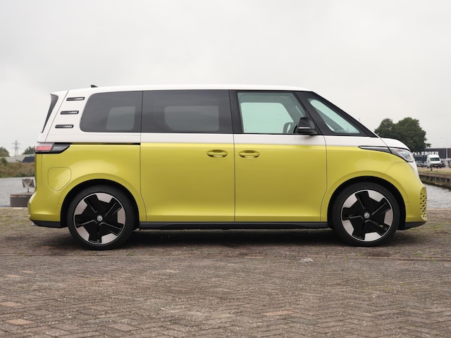 Bij Volkswagen draaien ze er niet omheen. Met dit exemplaar heeft u een van de meest veelzijdige, complete auto's te pakken. Met de elektromotor zoef je fluisterzacht over de weg. Niet voor niets is de vraag naar gebruikte Volkswagens zo groot, want de kwaliteit staat ook na een aantal jaren nog buiten kijf, zoals aan deze ID. Buzz duidelijk te zien is. 's Winters komen de verwarmbare voorstoelen heerlijk van pas. En ze zijn ook nog eens voorzien van massagefunctie. Je past de stoelen moeiteloos aan, ze zijn elektrisch in te stellen en hebben bovendien een geheugen. De achterklep opent automatisch met een druk op de knop. Handig als je met volle handen staat. Koude handen? Da's voorbij met het verwarmd stuurwiel. Pak aan! De geavanceerde matrix LED-verlichting in de koplampen levert maximaal helder zicht en past zich subtiel aan zodra er een tegenligger komt. Zonder lichtkwaliteitsverlies! De schuifdeur bij het passagiersdeel is ook een voordeel: geen uitzwaaiende portieren en een royale instap. Bij de uitrusting van deze auto horen onder meer 21 inch lichtmetalen velgen, geluidsisolerende ramen, in delen neerklapbare achterbank, LED-achterlichten, verwarmde ruitensproeiers en snelheidsafhankelijke stuurbekrachtiging.