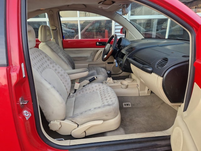 Onverwoestbaar als merk. Al jaren en jaren. Wat kunnen we nog meer zeggen? Volkswagen. Het zijn de degelijkheid van de constructie en de doordachtheid van het ontwerp die ervoor zorgen dat een Volkswagen jarenlang begeerlijk blijft. Zoals deze New Beetle, bijvoorbeeld. De aandrijving van deze Volkswagen wordt verzorgd door een viercilinder motor en een handgeschakelde versnellingsbak. Ook warmtewerend glas, in hoogte verstelbare passagiersstoel en neerklapbare achterbank zijn aan boord.