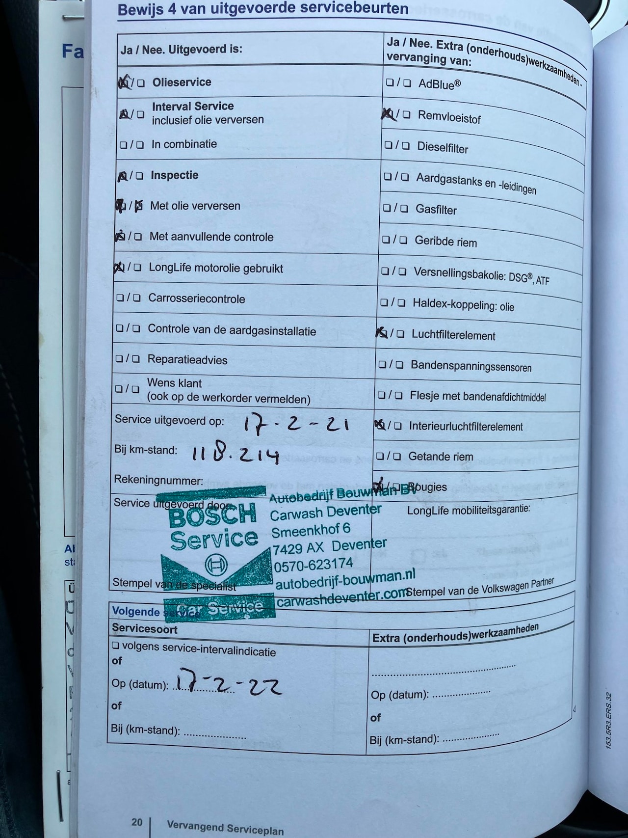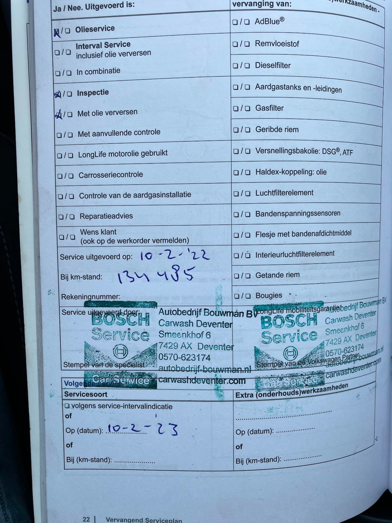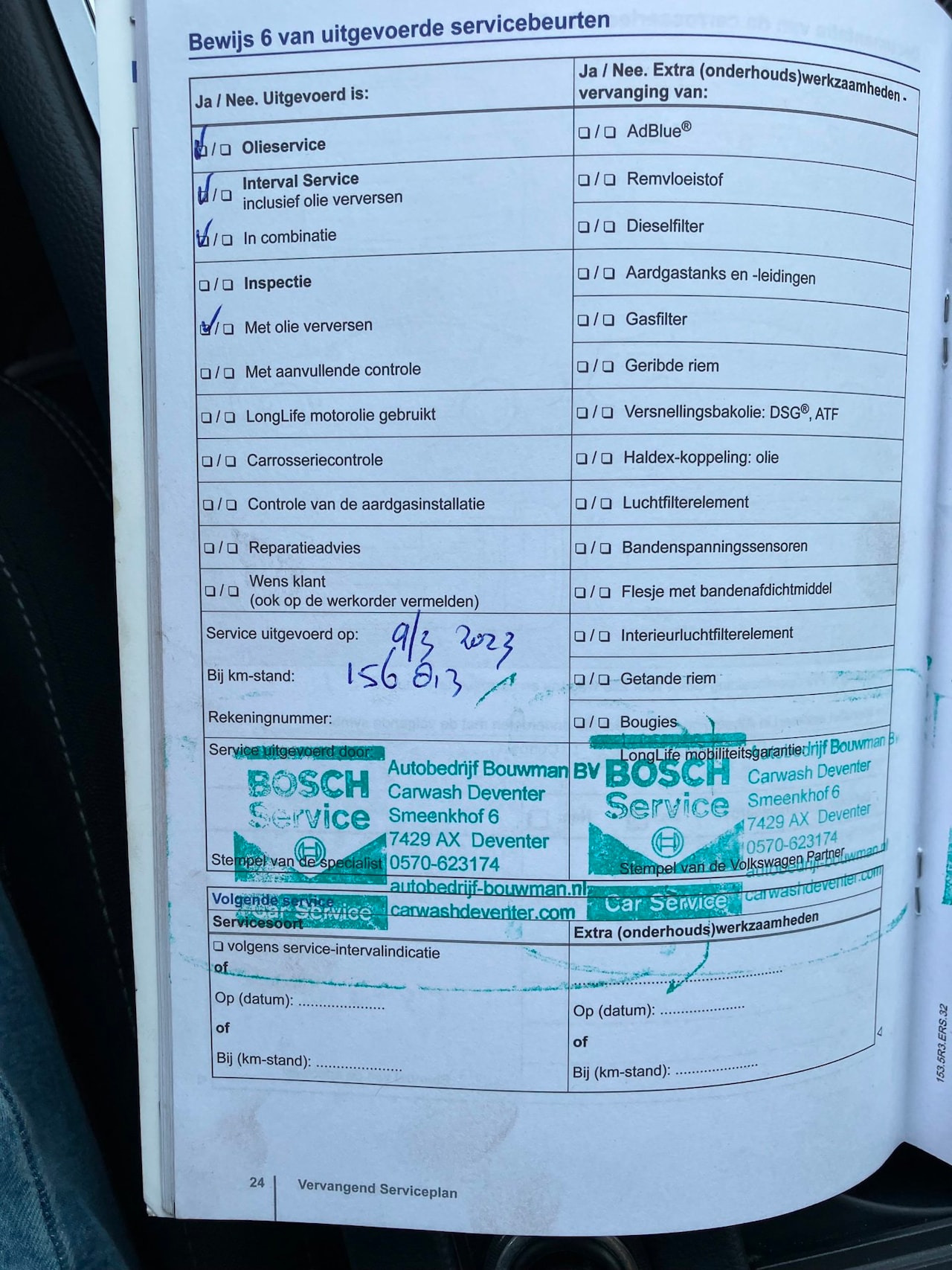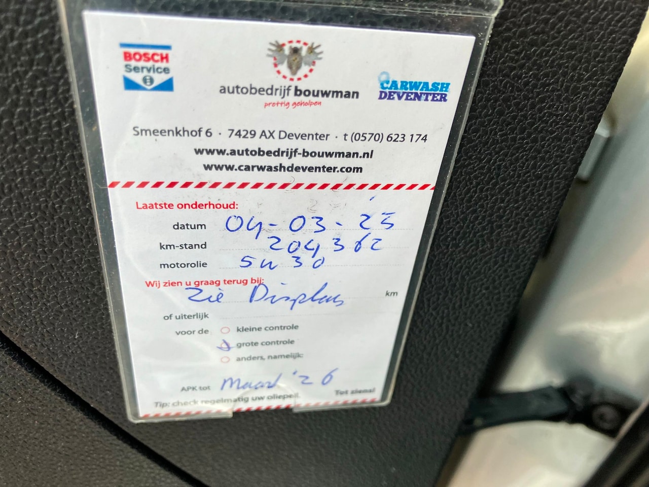 | APK | Bij aflevering |
