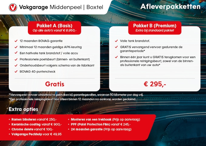 Wij leveren de auto rijklaar af incl het Vakgarage Middenpeel Premium pakket: