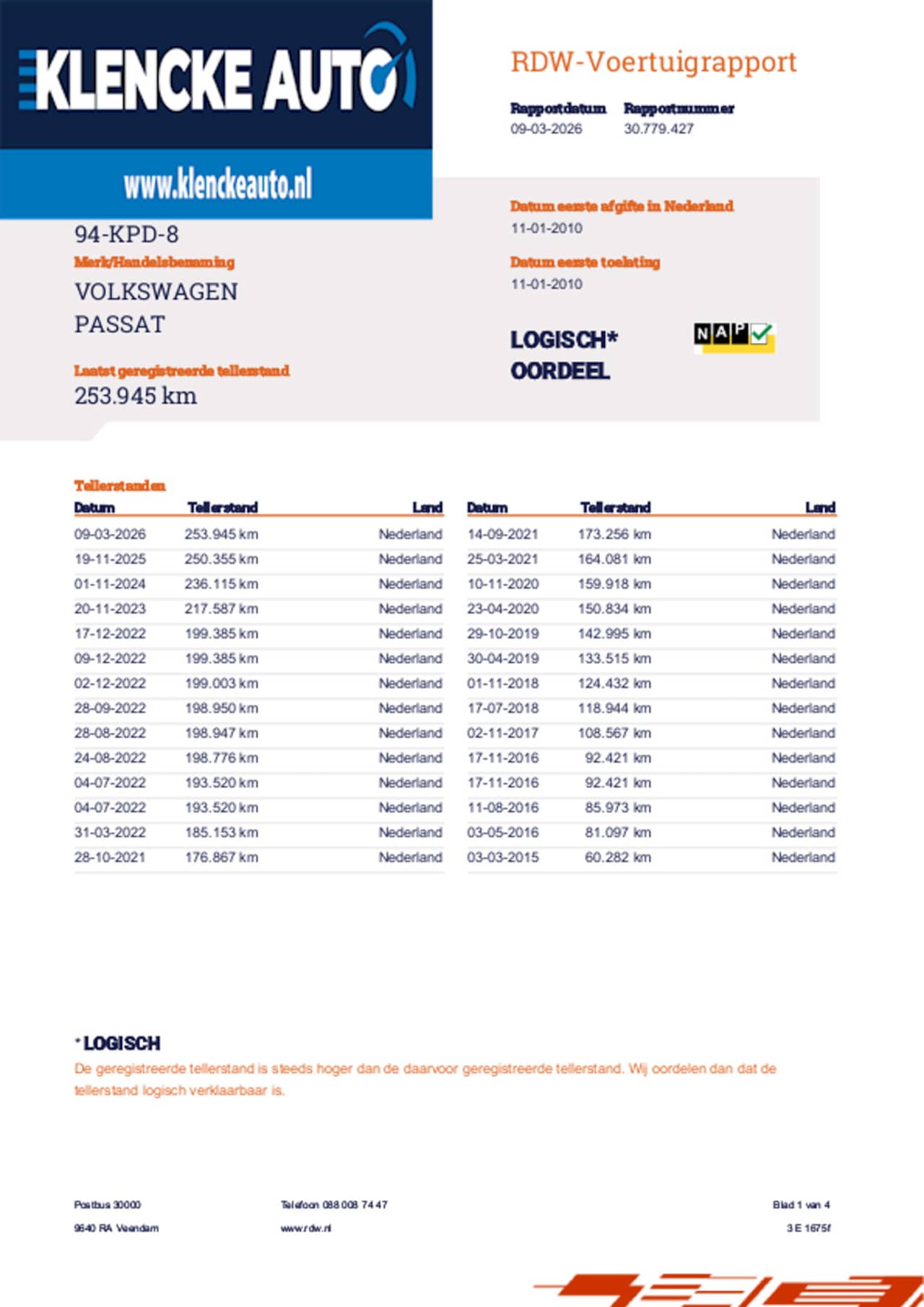 | Kilometerstand | 253.945 km |