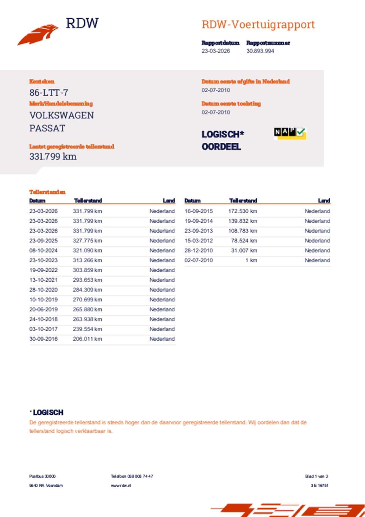 | Kilometerstand | 331.889 km |