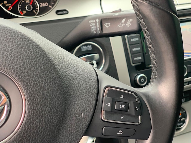Het navigatiesysteem geeft duidelijke instructies. Zo komt u veilig en vlot aan waar u moet zijn. De automatische airconditioning zorgt onder alle omstandigheden voor een prettige temperatuur. Even switchen naar de verkeersinformatie? Ook dat kan met één druk op de knop van de audiobediening op het stuur. Boem is ho? Niet bij deze Volkswagen Passat. De piepjes van de parkeersensoren waarschuwen u op tijd voor obstakels. Om de veiligheid onderweg te verhogen, heeft deze Volkswagen zowel een automatisch inschakelbare verlichting als een regensensor aan boord, zodat hij zelf de verlichting en de ruitenwissers kan inschakelen. Deze Volkswagen is voorzien van cruise control, automatisch dimmende binnenspiegel, lederen stuur, centrale deurvergrendeling met afstandsbediening, boordcomputer en lederen versnellingspook.